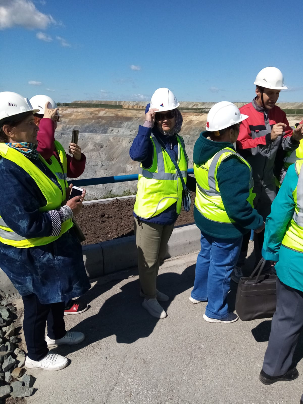Туристы посетили музей, в котором предоставлены все породы, добываемые в производстве, посмотрели фильм о том, как развивался горно-обогатительный комбинат. Пенсионерам очень понравилась экскурсия, им было интересно увидеть масштабы и процесс добычи пород, познакомиться с современным производством, на котором работают дети и внуки участников экскурсии.