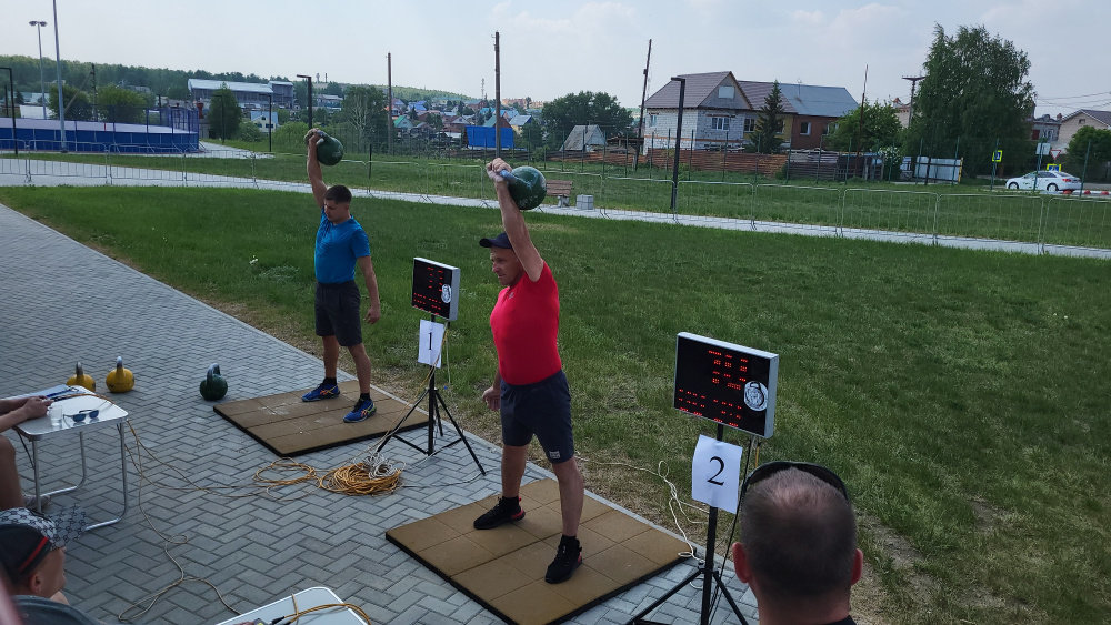 На термометре +32. Спортсменам предстоит бег на 500 метров и рывок гири весом 24 кг. за три минуты. Данный вид спорта введён в этом году в первый раз.