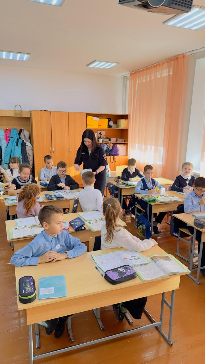 Выступая перед учениками, сотрудник полиции разъяснила слушателям особенности осенне-зимнего периода для пешеходов и водителей, рассказала, какие факторы влияют на длину тормозного пути автомобиля и видимость пешеходов на проезжей части. Напомнила, что в связи с сокращением светового дня в утренние часы водителям сложнее заметить пешеходов на проезжей части, если у него отсутствуют световозвращатели.
