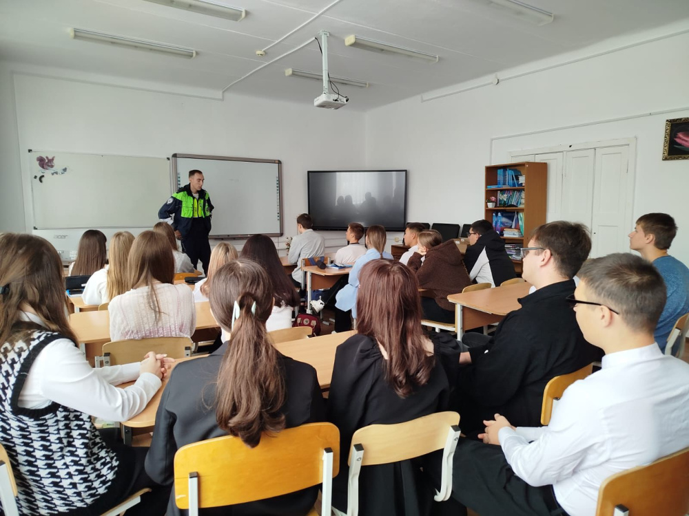 Иинспектор дорожно-патрульной службы лейтенант полиции Никита Медников со школьниками п. Новый Урал и п. Толсты провел профилактические беседы.