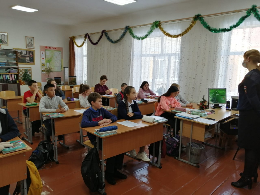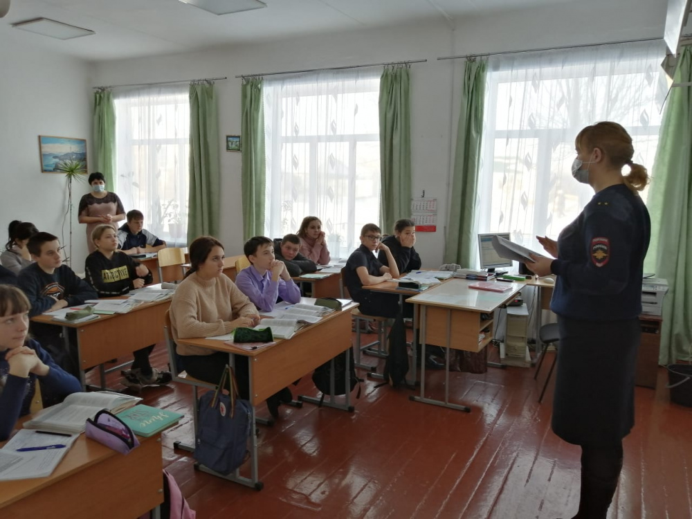 Инспектор ПДН ОМВД России по Варненскому району лейтенант полиции Татьяна Проховская провела беседу с учащимися 7-8 классов МОУ СОШ п. Новопокровка о правилах и нормах безопасного поведения дома, на улице и на дороге, а также довела информацию об ответственности несовершеннолетних в случае совершения противоправных деяний.