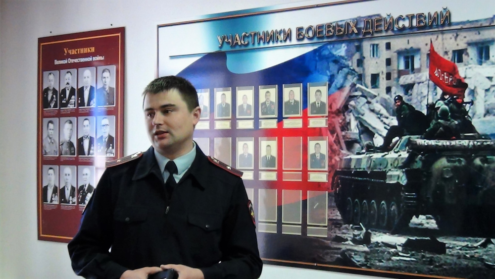Акция открылась встречей с начальником отделения по работе с личным составом майором внутренней службы Алексеем Никуленковым. На обзорной экскурсии по отделу, Алексей Анатольевич рассказал студентам об особенностях работы дежурной части, о важности своевременного принятия, регистрации и реагирования на сообщения о преступлении или административном правонарушении.