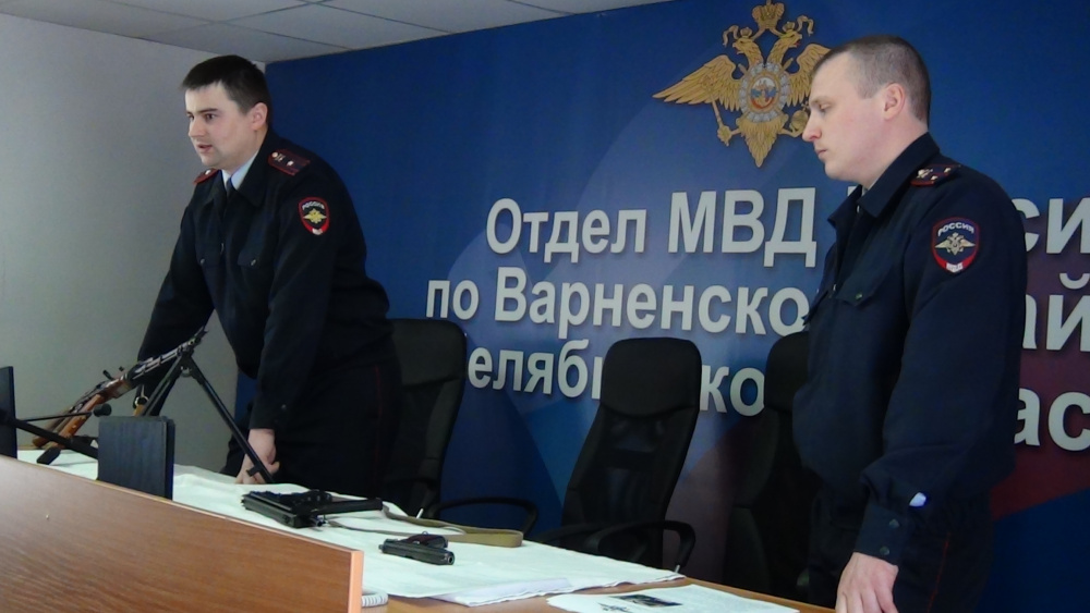 Инспектор направления профессиональной подготовки лейтенант внутренней службы Максим Минаков продемонстрировал огнестрельное оружие и специальные средства защиты, состоящие на вооружении в ОВД.