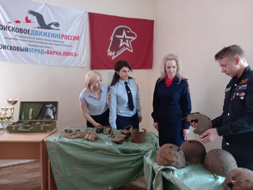 Сотрудники отделения по вопросам миграции ОМВД России по Варненскому району по приглашению председателя Общественного совета при ОМВД России по Варненскому району Александры Акиньшиной посетили музей поискового юнармейского отряда «Варна Поиск», местного отделения Всероссийского детско–юношеского военно-патриотического общественного движения «ЮНАРМИЯ» Варненского муниципального района.