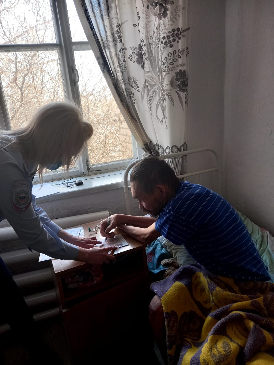 Полицейские откликнулись на просьбу и после оформления документа в однодневный срок в заранее согласованное удобное для гражданина время начальник отделения по вопросам миграции ОМВД майор полиции Олеся Самокиш совместно с сотрудниками комплексного центра привезла паспорт гражданина Российской Федерации в больницу и вручила заявителю, пожелав ему крепкого здоровья и благополучия. Мужчина поблагодарил полицейских за проявленную заботу, понимание и поддержку.