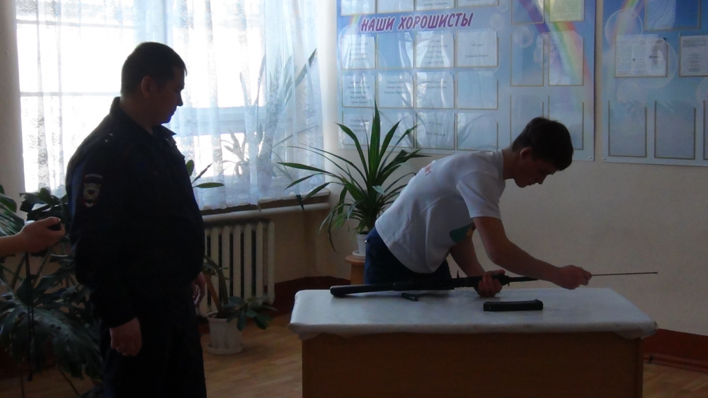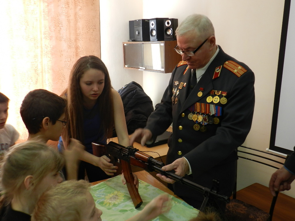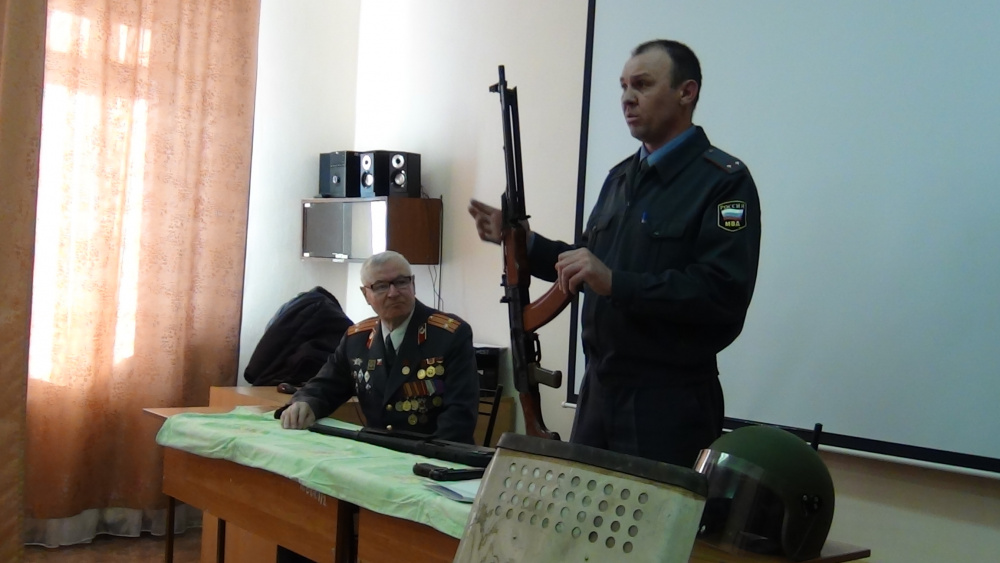Затем, действующий сотрудник, участник боевых действий в Чеченской Республике Алексей Катрюк, поделился с ребятами своими воспоминаниями о службе в боевых точках. Ребята активно задавали вопросы и интересовались особенностями службы.