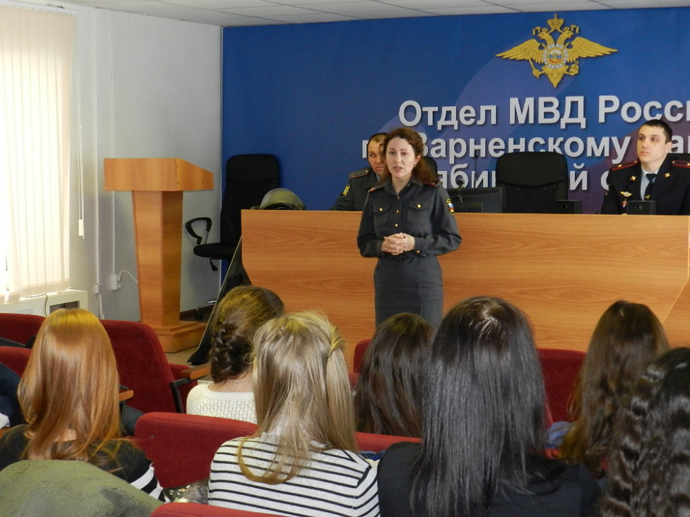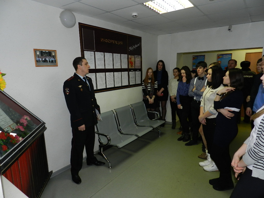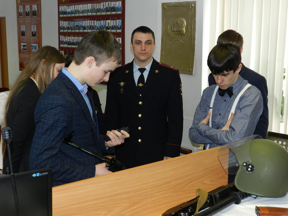 17 февраля с целью патриотического воспитания молодёжи, в гости в отдел полиции были приглашены ученики 10-11 классов МОУ гимназии им. Карла Орфа, для ознакомительной экскурсии по отделу. Во время встречи начальник отделения по работе с личным составом майор внутренней службы Николай Рыбаков ознакомил детей с работой полицейских, кроме того были продемонстрированы образцы вооружения и специальных средств, состоящих на вооружении полиции, боевые приёмы. Ребята узнали о специальностях, порядке и требованиях, предъявляемых к желающим поступить в образовательные учреждения системы МВД России. Инспектор ПДН лейтенант полиции Ирина Дудина рассказала школьниками об уголовной и административной ответственности.