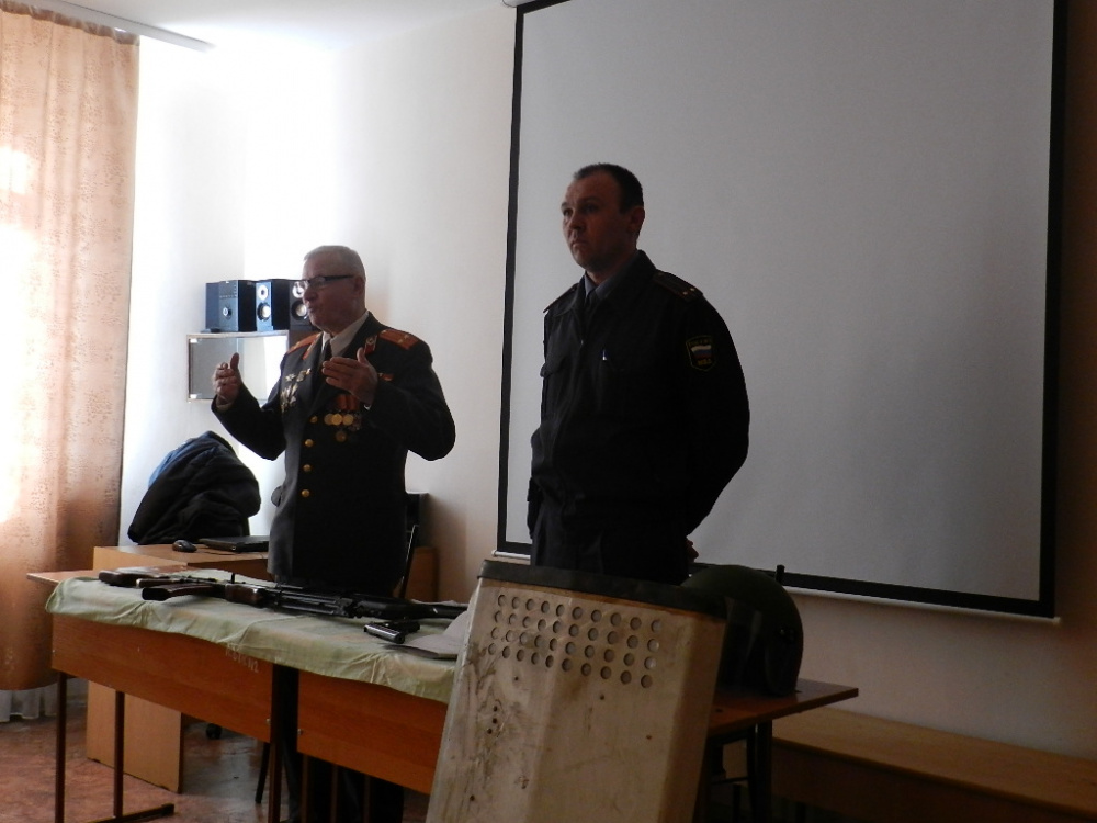 19 февраля сотрудники полиции, члены Общественного совета и Совет ветеранов приехали провести «Урок мужества» со своими подшефными детьми из Детского дома. Подполковник милиции в отставке Виктор Артемьев поздравил мальчишек с наступающим праздником, и пожелали им крепкого здоровья, успехов в учёбе и исполнения всех желаний.