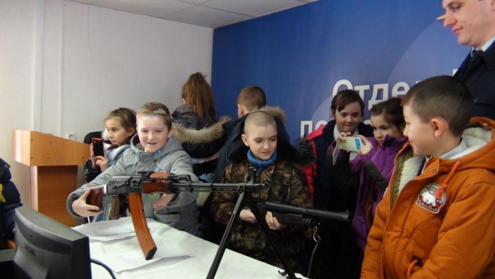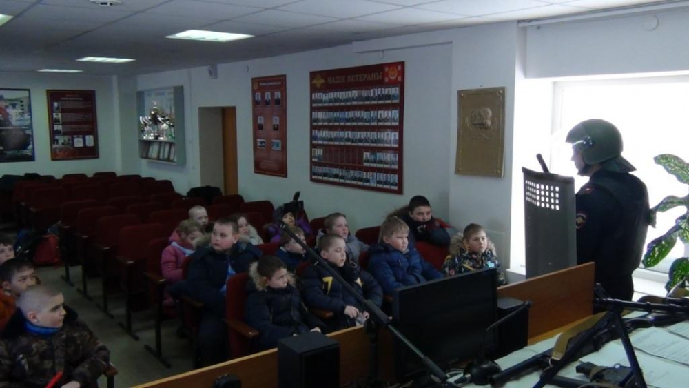 В актовом зале отдела Николай Николаевич рассказал о ветеранах Великой Отечественной войны, служивших в Варненском РОВД, о службе в органах внутренних дел о традициях в отделе, задачах и повседневных служебных обязанностях полицейских, приводя много примеров раскрытия преступлений. Было продемонстрировано оружие и специальные средства защиты, находящиеся на вооружении в системе МВД. Дети слушали с интересом и задавали вопросы.