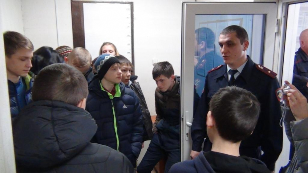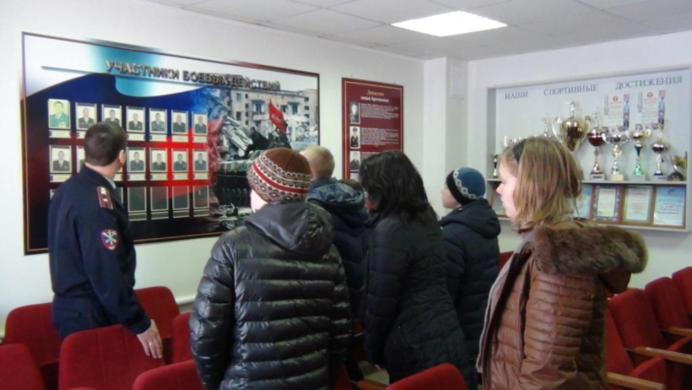 Началась экскурсия с обзора работы дежурной части. Полицейские рассказали о функциях работы изолятора временного содержания и основных направлениях деятельности дежурной части. Затем ребятам был показан уголок памяти прапорщика милиции В.В. Подберезного, погибшего в служебной командировке в г. Аргун Чеченской Республики, рассказаны библиографические данные и обстоятельства гибели.