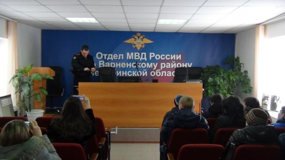 17 февраля с целью патриотического воспитания молодёжи, в гости в отдел полиции пришли ученики 3 класса МОУ СОШ № 1 села Варна. Во время встречи заместитель начальника Н.Н. Рыбаков ознакомил детей с работой полицейских, кроме того были продемонстрированы образцы вооружения и специальных средств, состоящих на вооружении полиции.