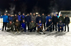 На ледовом поле в сквере им. Ю. А. Гагарина села Варна состоялся товарищеский матч по хоккею с мячом на валенках между сотрудниками ОМВД России по Варненскому району.