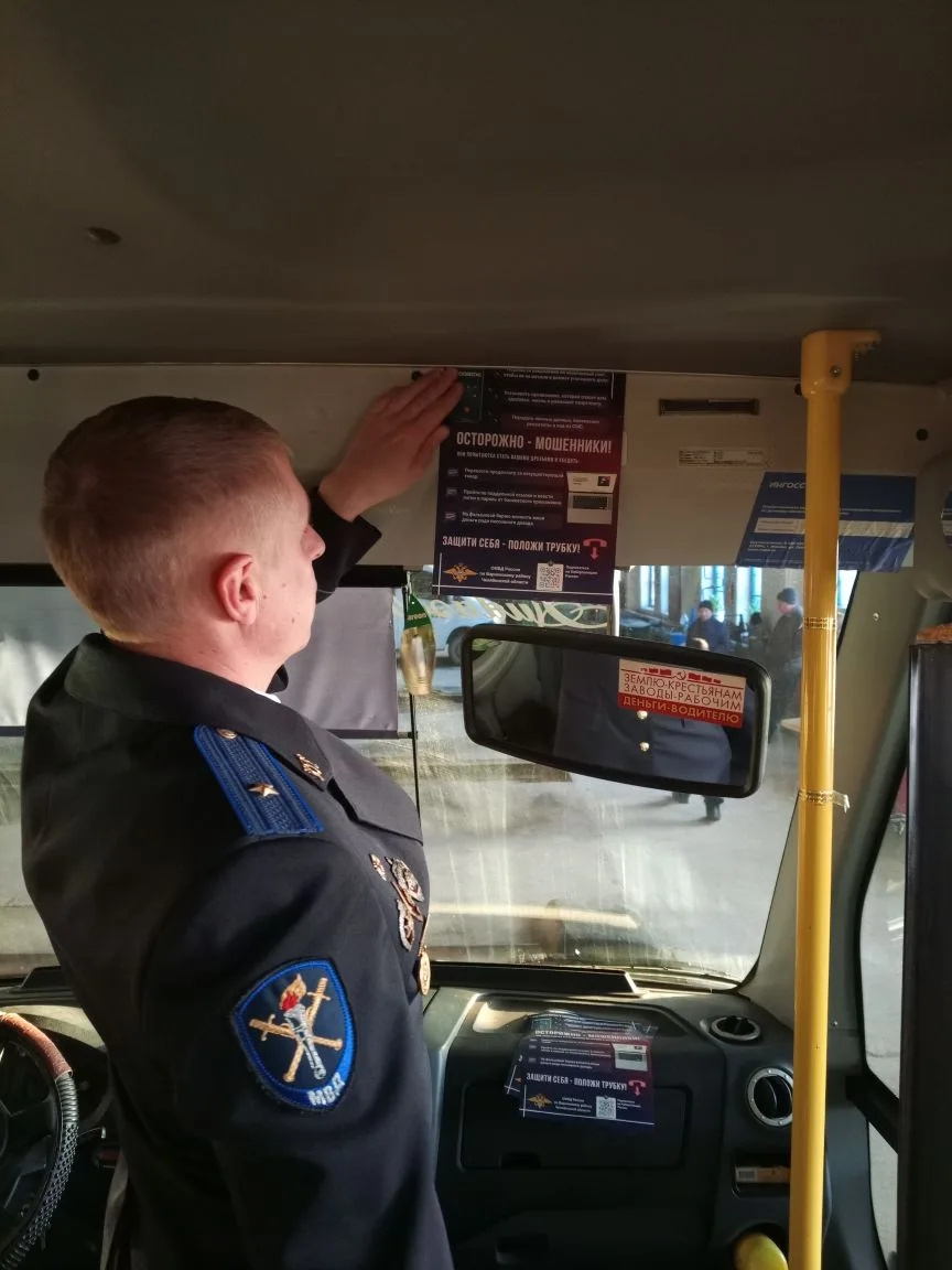 Чтобы уведомить максимальное количество граждан, донести информацию до пассажиров уже с утра, охватить разные социальные группы населения, повысить бдительность граждан в повседневной среде на бортах автобусов разместили листовки по информированию пассажиров о схемах мошенничества, алгоритмы действий при столкновении с подозрительной ситуацией, контакты для обращения.
