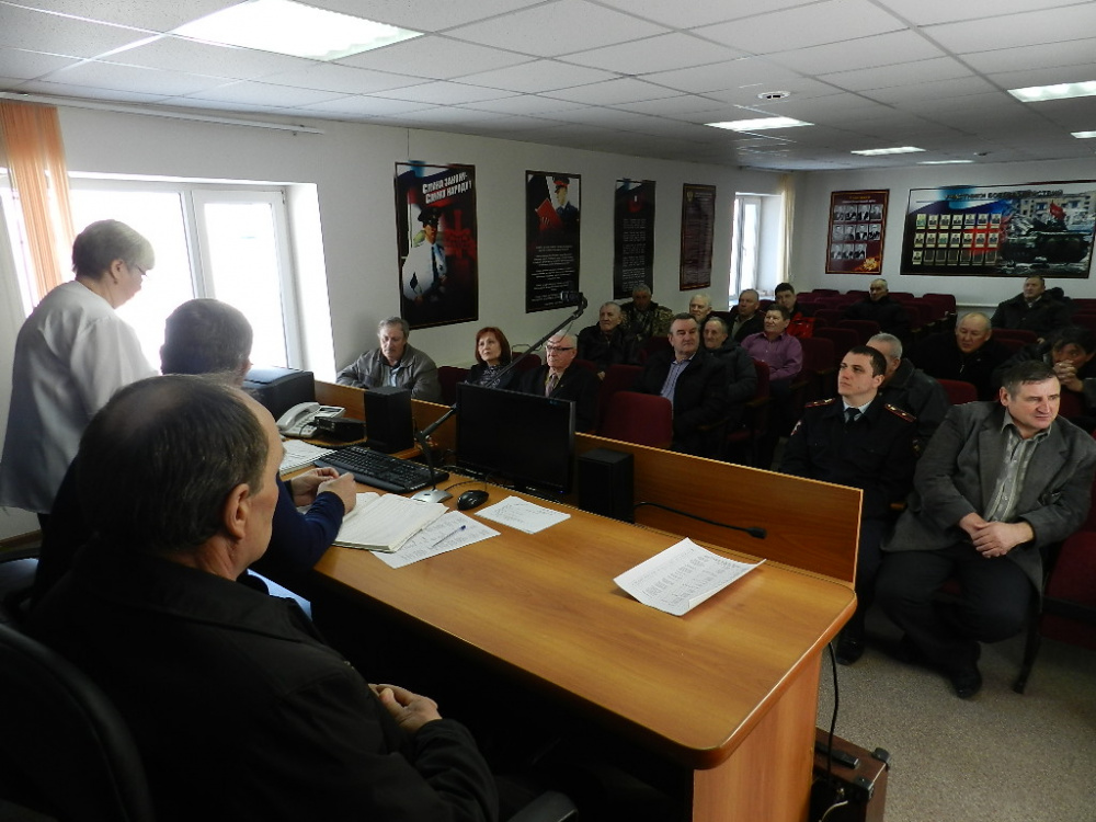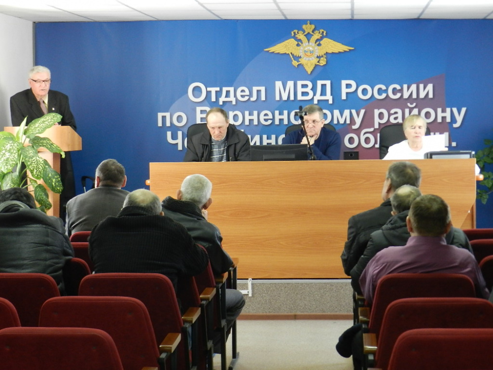 В актовом зале Отдела МВД России по Варненскому району состоялось собрание Совета ветеранов, на котором подвели итоги за 2016 год и обсудили планы на предстоящий год. Собрание проходило в рамках отчётно – выборной компании в ветеранских организациях области. На собрании были приглашены заместитель главы по социальным вопросам администрации Варненского муниципального района С.А. Макайкина, председатель районного Совета ветеранов Г.Г. Чернакова, заместитель начальника отдела майор внутренней службы Н.Н. Рыбаков.