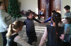 Играли в игры «Помоги маме накрыть новогодний стол», «Возьми кеглю», «Музыкальный мяч».