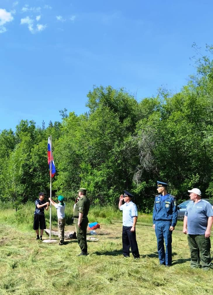 Открытие мероприятия началось с торжественного поднятия флага Российской Федерации под гимн России. После чего дети приступили к основной части мероприятия - прохождению этапов.