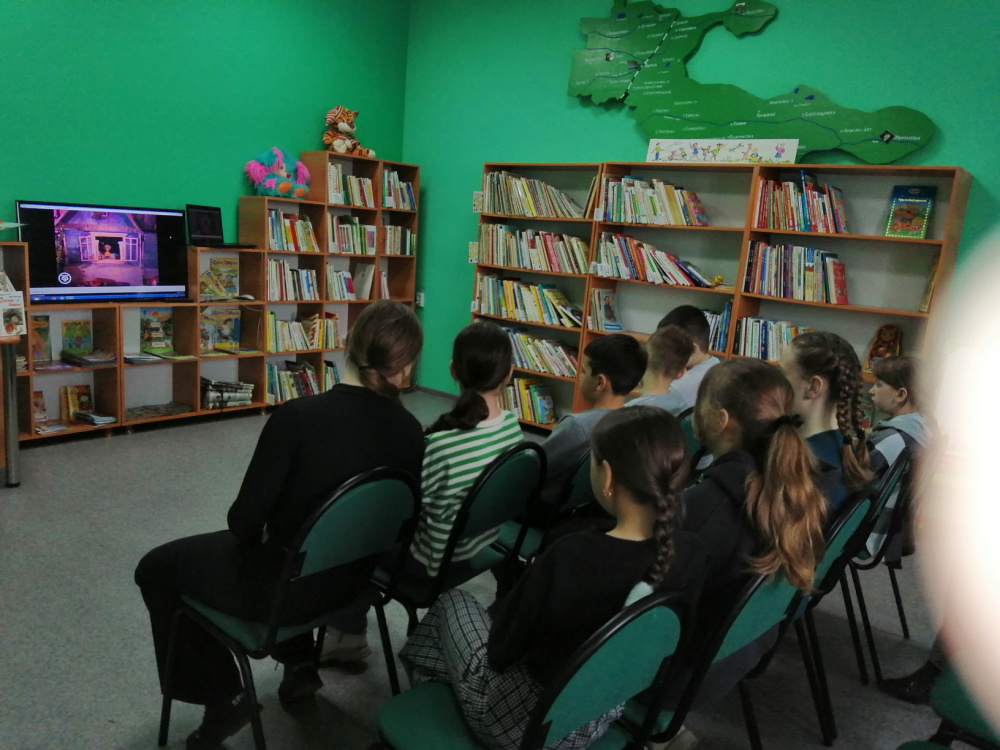В завершение встречи детям было предложено посмотреть мультфильм «Ростик и Кеша» снятый по одноименной сказке И. Токмаковой.