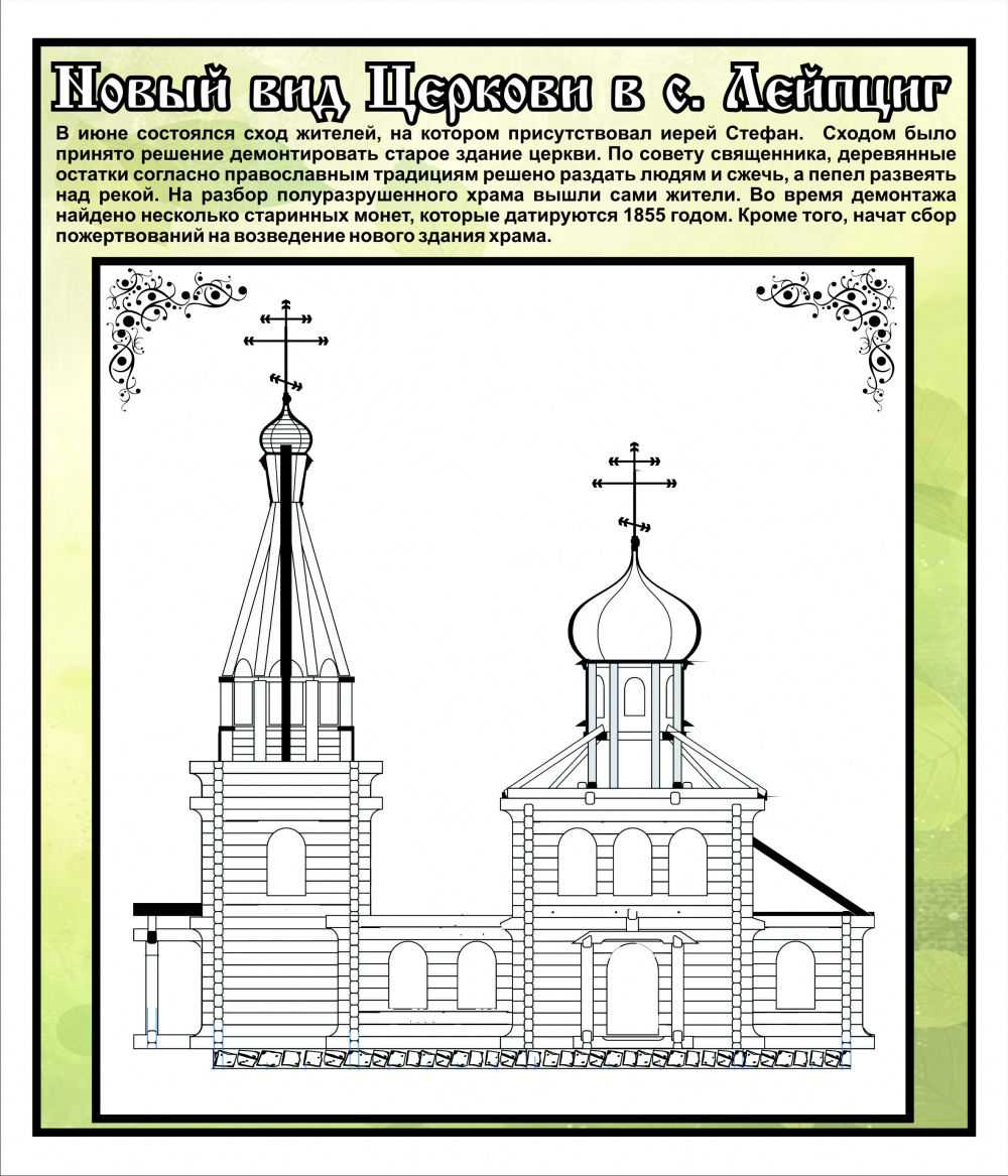 В июне 2012 г. состоялся сход жителей с. Лейпциг и было принято решение демонтировать старое здание церкви.