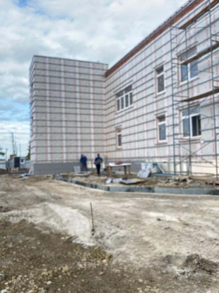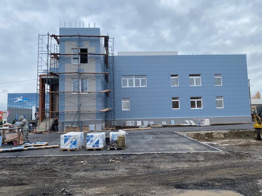 Срок сдачи объекта — до конца этого года. На сегодняшний день выполнено 72% работ. На стадии выполнения внутренняя отделка и благоустройство прилегающей территории.