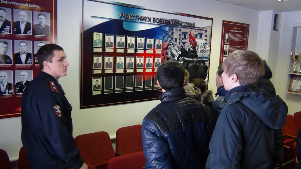 На обзорной экскурсии по отделу, студентам рассказали об особенностях работы дежурной части, о важности своевременного принятия, регистрации и реагирования на сообщения о преступлении или административном правонарушении. Студенты увидели также служебное помещение задержанных, куда доставляют правонарушителей. Затем был показан уголок памяти прапорщика милиции В.В. Подберезного, погибшего в июле 2000 года в служебной командировке в г.Аргун Чеченской Республики.