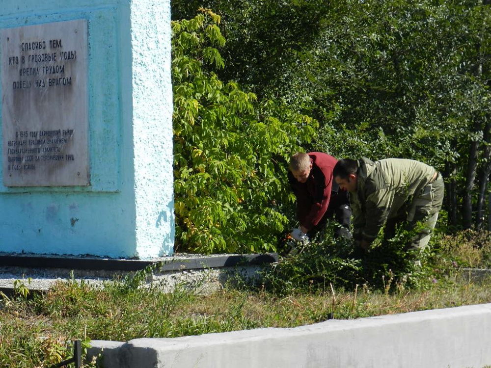 В целях патриотического воспитания и в рамках экологического субботника «Зелёная Россия» 28 августа сотрудники полиции ОМВД России по Варненскому району совместно с ветеранами МВД провели субботник на территории Мемориала Славы и мемориальной доски памяти, погибшего в г. Аргун Чеченской Республики прапорщика милиции В.В. Подберезного в селе Варна.