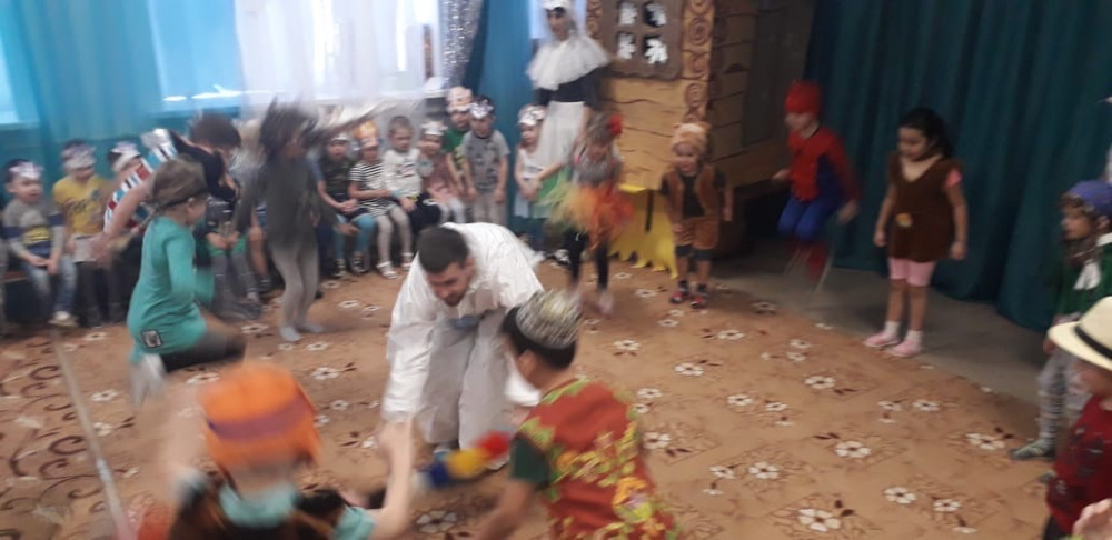 Дети ходили с песнями-колядками в самодельных костюмах и колядовали. Собравшись в доме у «бабушки Мани», дети водили хороводы с «Зимушкой». Гадали на профессии с «Цыганкой» и передавали валенок под музыку. Прыгали со «Снеговиком» через скакалку и перетягивали канат. Угостили конфетами «Медведя», который развлекал хозяев. «Доброго молодца», оказавшегося «Чёртом», вымели из дома. На радости такой, все дружно вышли танцевать.