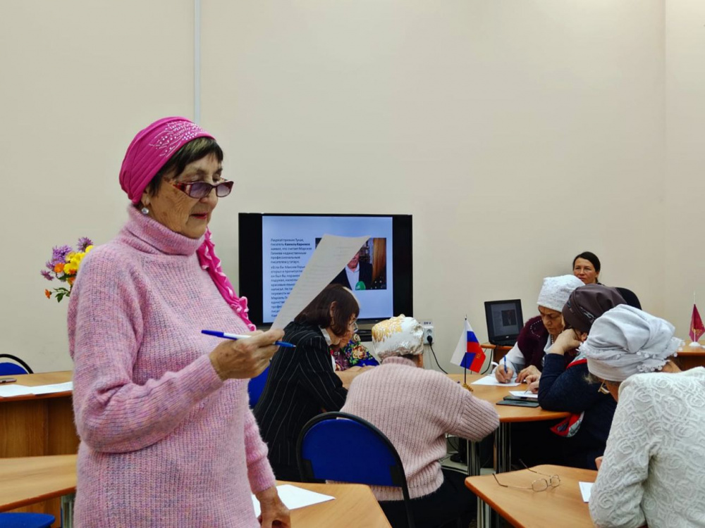15 октября наша Варна также присоединилась к этой акции. Она проводилась Центром национальных культур Дворца культуры «Планета» совместно с центральной библиотекой. Участники акции писали диктант по рассказу Марселя Галиева. Диктант проводила руководитель Центра национальных культур ДК «Планета» Якупова З.М. С текстом диктанта справились все участники.