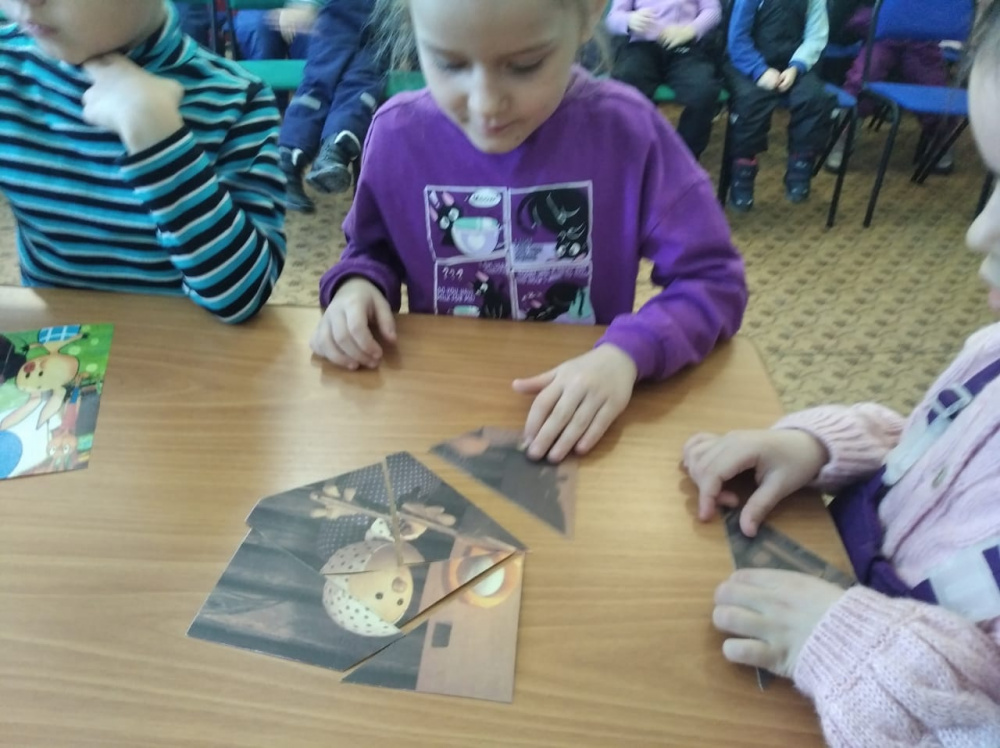 Далее библиотекарь рассказала детям о том, что в книжном домике живут разные книжки: книжки - домоседы которые нельзя брать домой, их можно читать только в читальном зале библиотеке, и книжки - непоседы, которые малыши могут забирать и читать дома. Ребята с большим восторгом, а кто и затаив дыхание, смотрели на множество книг в красивых переплётах, на замечательно оформленных стеллажах - такого количества книг дети ещё никогда не видели. Юные книголюбы смогли продемонстрировать свою начитанность, приняв участие в сказочных викторинах «Узнай героя», «Назови сказку», собирали пазлы и отгадывали, что за сказка здесь «спряталась».