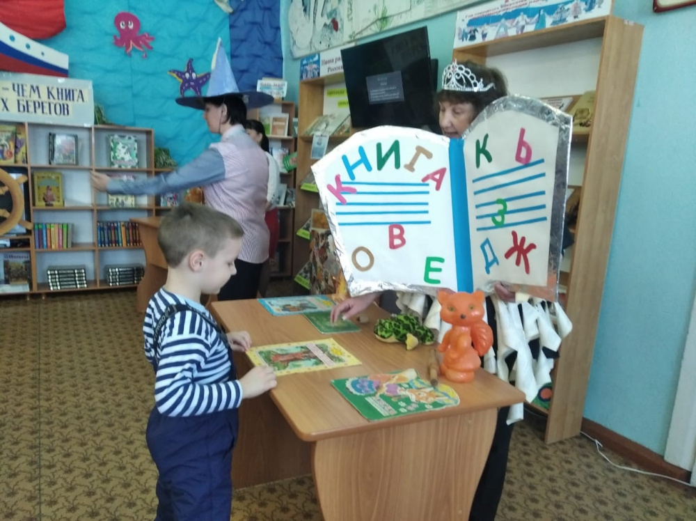 В читальный зал библиотеки на встречу с ребятами пришли гости: Её величество Книга и Незнайка. От наших героев, в игровой форме, малыши узнали, что у каждой книги есть своё место на книжной полке, правила поиска нужной книги, а также побывали в стране «Журналии», где познакомились с детскими журналами: «Мурзилка», «Свирелька», «Саша и Маша». Ещё ребята узнали, что такое абонемент, читальный зал, формуляр читателя и правила поведения в библиотеке.