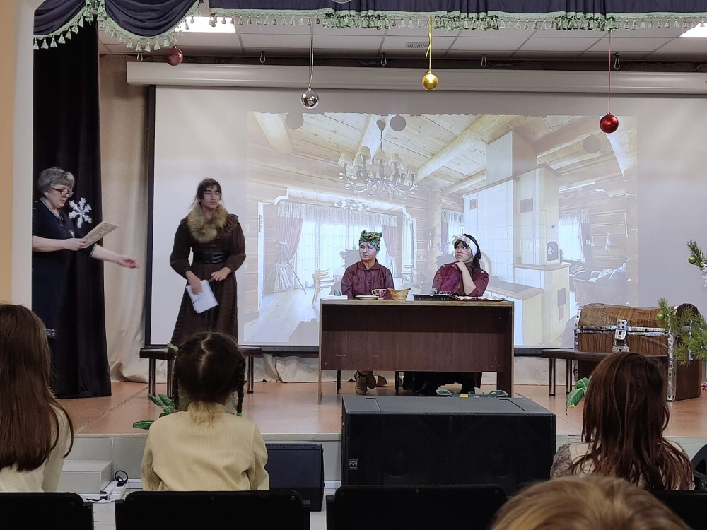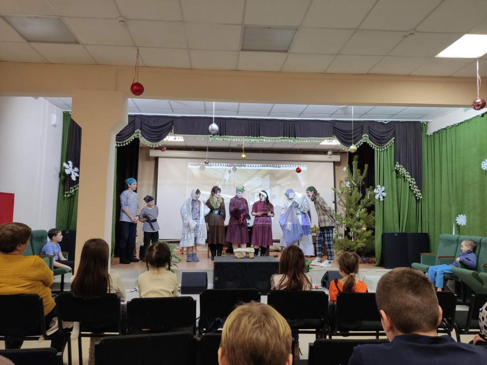 Со сказочными героями: Параней Тарасовной, Груней, Настей, Жадюкиной, Атаманшей и разбойниками, Дедом Морозом ребята сразу оказались в праздничной новогодней атмосфере. Сказка прошла эмоционально и весело. Среди участников царила атмосфера волшебства и исполнения желаний. Дед Мороз порадовал детей подарками.