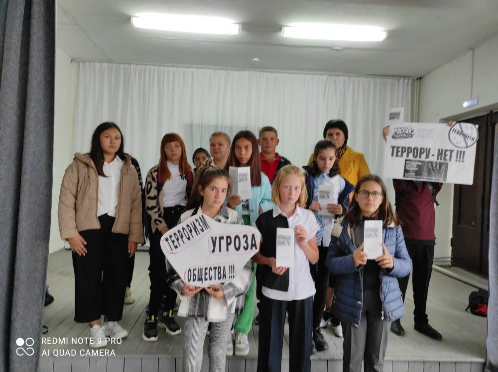 Для школьников совместно с библиотекой была проведена беседа-предупреждение, приуроченная ко Дню солидарности в борьбе с терроризмом. На мероприятии говорили о том, что такое терроризм, о его последствиях, о трагедии в Беслане, которая принесла слёзы, страдания, боль, о терактах, которые произошли в последнее десятилетие. В заключение мероприятия всем присутствующим раздали буклеты. «Как вести себя в чрезвычайных ситуациях».