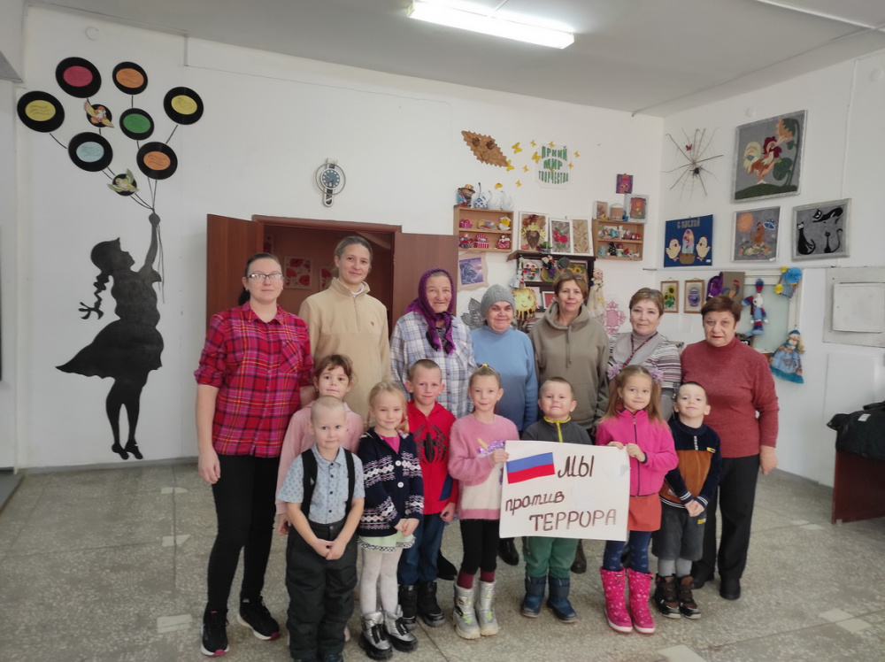 Ребята слушали внимательно, задавали вопросы. В конце мероприятия сделали общее фото с плакатом «Мы против террора».
