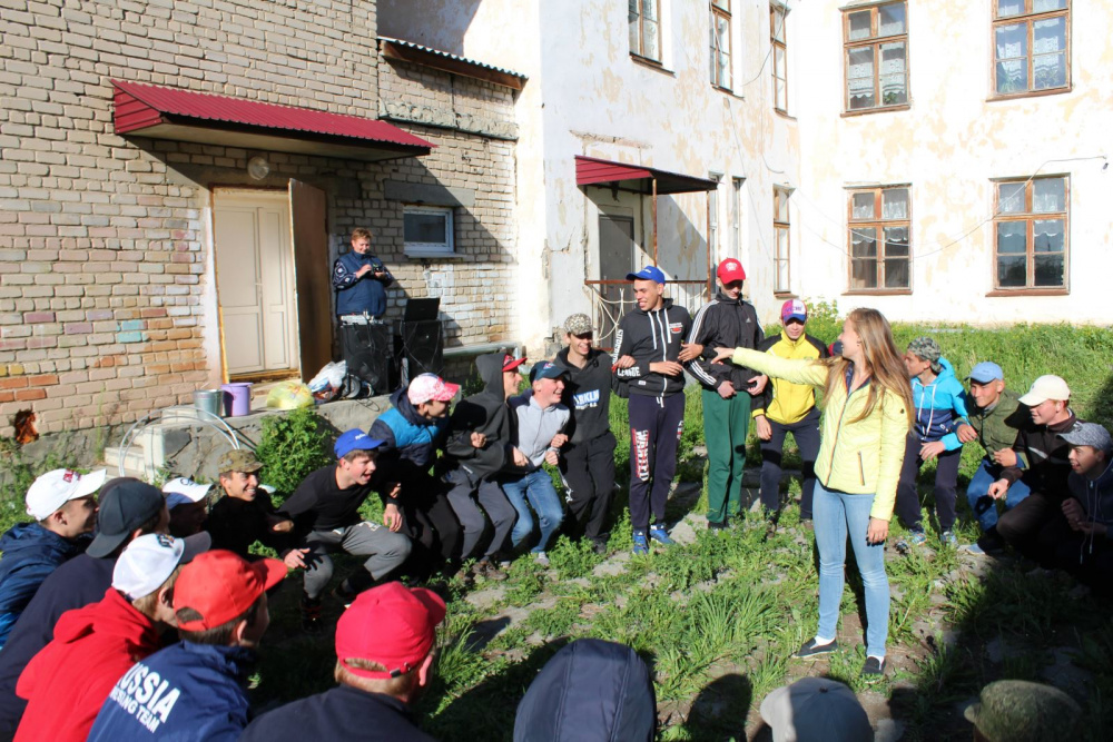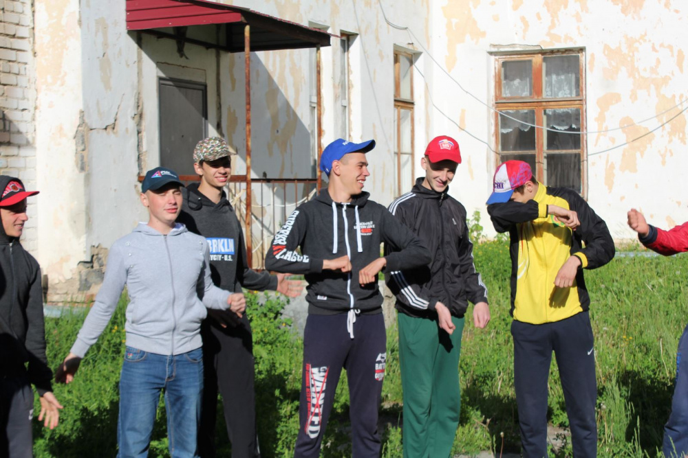 Тимбилдинг включал в себя несколько этапов. Первый этап – разминка. Юноши выстроились в один большой общий круг и повторяли движения за ведущим. С каждым последующим упражнением, сложность выполнения возрастала и требовала от ребят большей концентрации и повышенной ответственности не только за себя, но и за команду в целом, т.к. главным критерием было выполнить задание одновременно, слаженно и всем вместе.