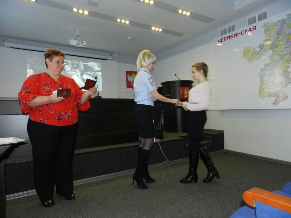 Затем начальником отдела по делам миграции ОМВД России по Варненскому району майором полиции ОС.Самокиш после напутственных слов в торжественной обстановке были вручены паспорта 14 летним школьникам.