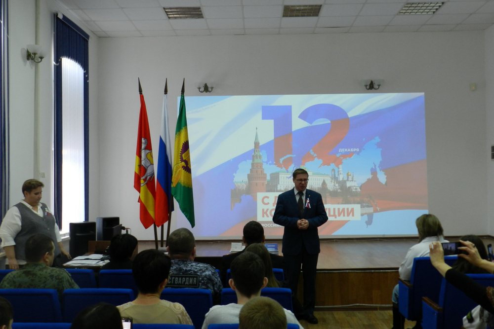 Торжественное мероприятие открыла председатель Общественного совета при ОМВД России по Варненскому району Александра Акиньшина. Звучит Государственный Гимн России. Затем Александра Дмитриевна совместно с ребятами из отряда "Варна.Поиск"», рассказали историю возникновения Конституции в нашей стране. Прозвучали стихи о Родине, о Варненском районе.
