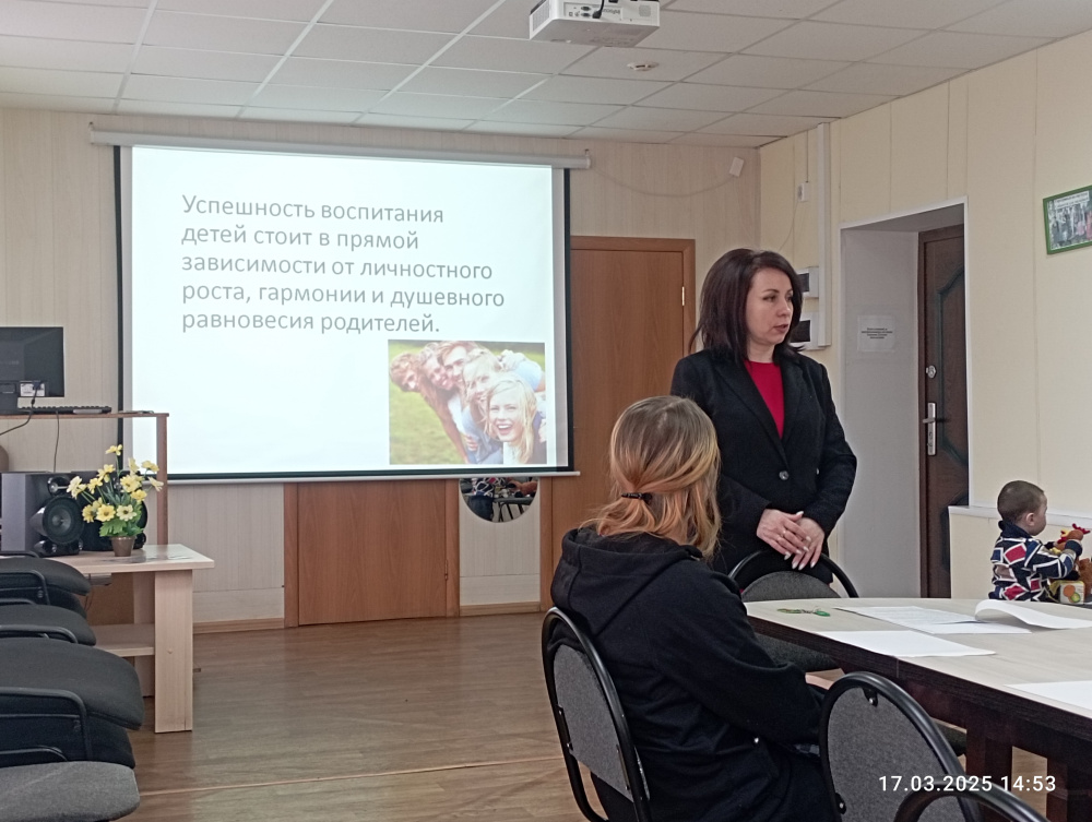 В целях оптимизации и гармонизации внутрисемейных отношений в семьях, состоящих на обслуживании в отделении помощи семье и детям 17 марта 2025 года в актовом зале МУ «КЦСОН», психологом Т.В. Заболотниковой совместно со специалистами отделения был проведён тренинг «Тропинкой родительской любви и мудрости».