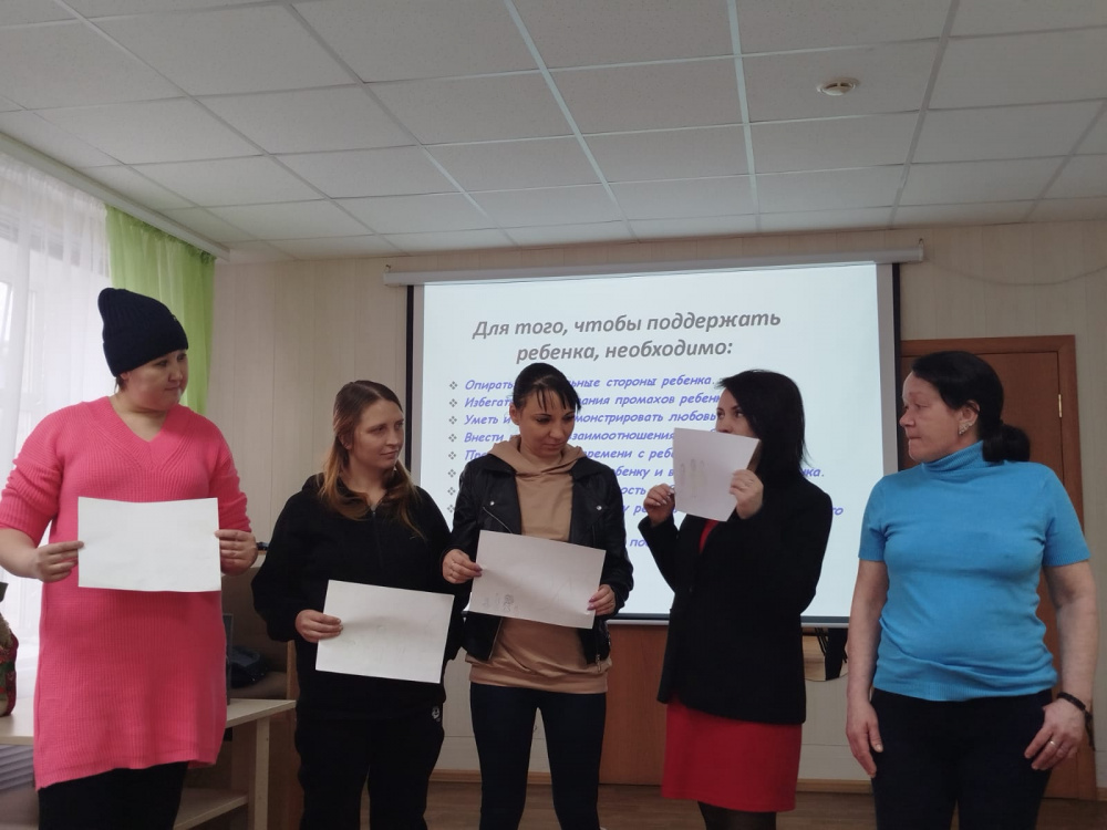 Сегодня в ходе игрового тренинга родители, а точнее мамы, активно выражали свою точку зрения, открыто делились чувствами, эмоциями совместно обсуждали успехи и трудности, с которыми сталкиваются при воспитании детей. Проективный тест «Моя семья» подтвердил наличие определенных проблем в семьях, предложены рекомендации по их разрешению.