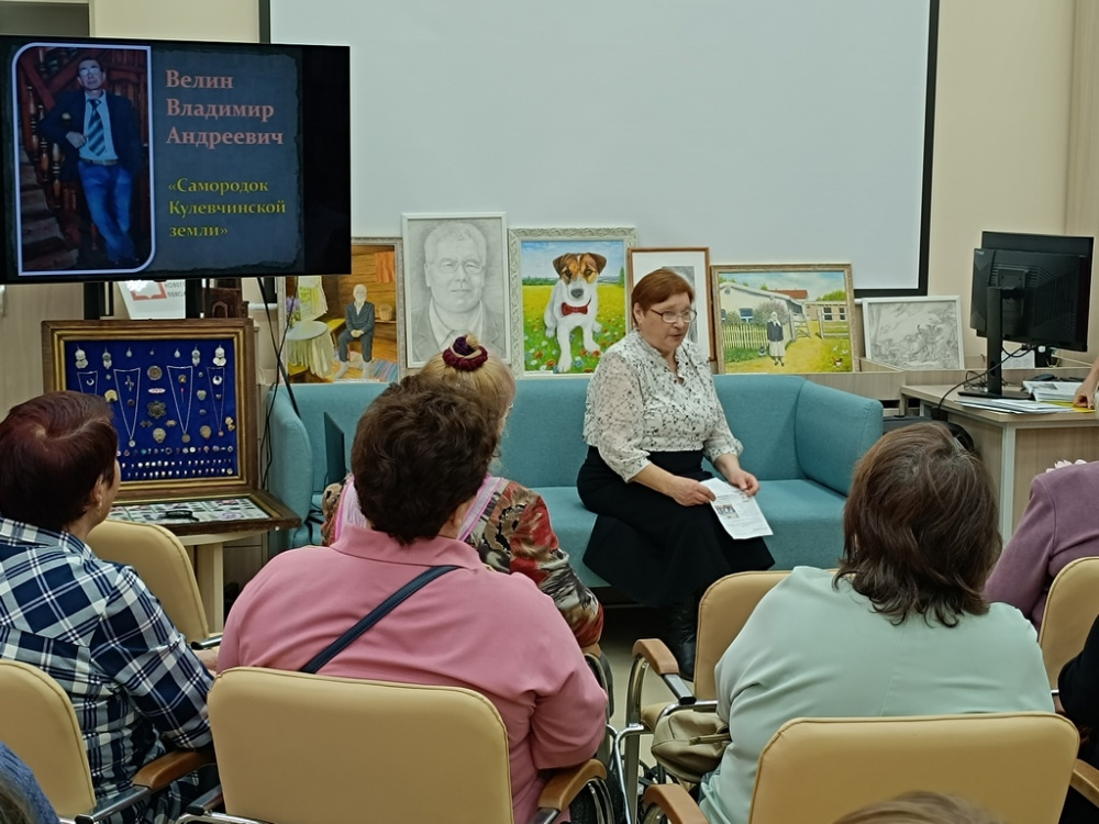 В преддверии Дня поэзии, 19 марта в нашей библиотеке прошла творческая встреча с Велиным Владимиром Андреевичем «Самородок Кулевчинской земли». Это очень многогранный и увлечённый человек. Поэт, прозаик, художник, фотограф, археолог-любитель, резчик по дереву, коллекционер, философ — это всё о нём. Обо всех талантах Владимира Андреевича можно говорить бесконечно. Поддержать любимого земляка приехали участники поэтического клуба «В кругу друзей», которые прочитали стихи, посвящённые этому талантливому человеку.