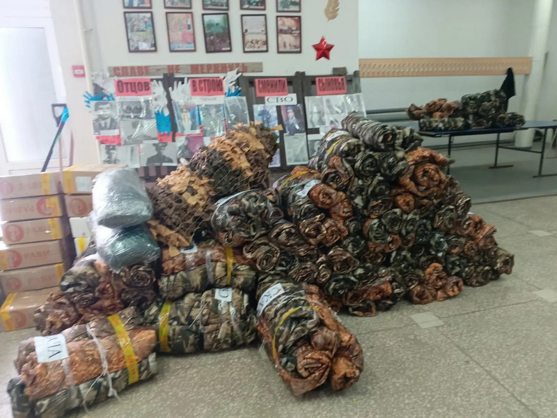 Общими усилиями добровольцами села были собраны самые необходимые вещи, маскировочные сети, антидроновые одеяла, продукты длительного хранения-консервы, крупы, сухие супы, чай и т.п.