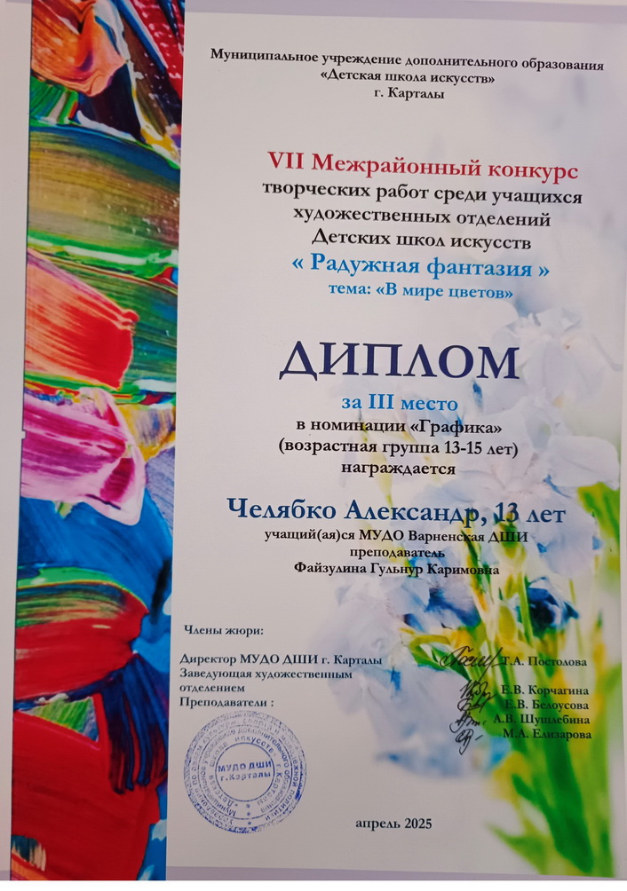Ученики художественного отделения Варненской детской школы искусств приняли участие в VII межрайонном конкурсе творческих работ «Радужная фантазия» в г. Карталы.