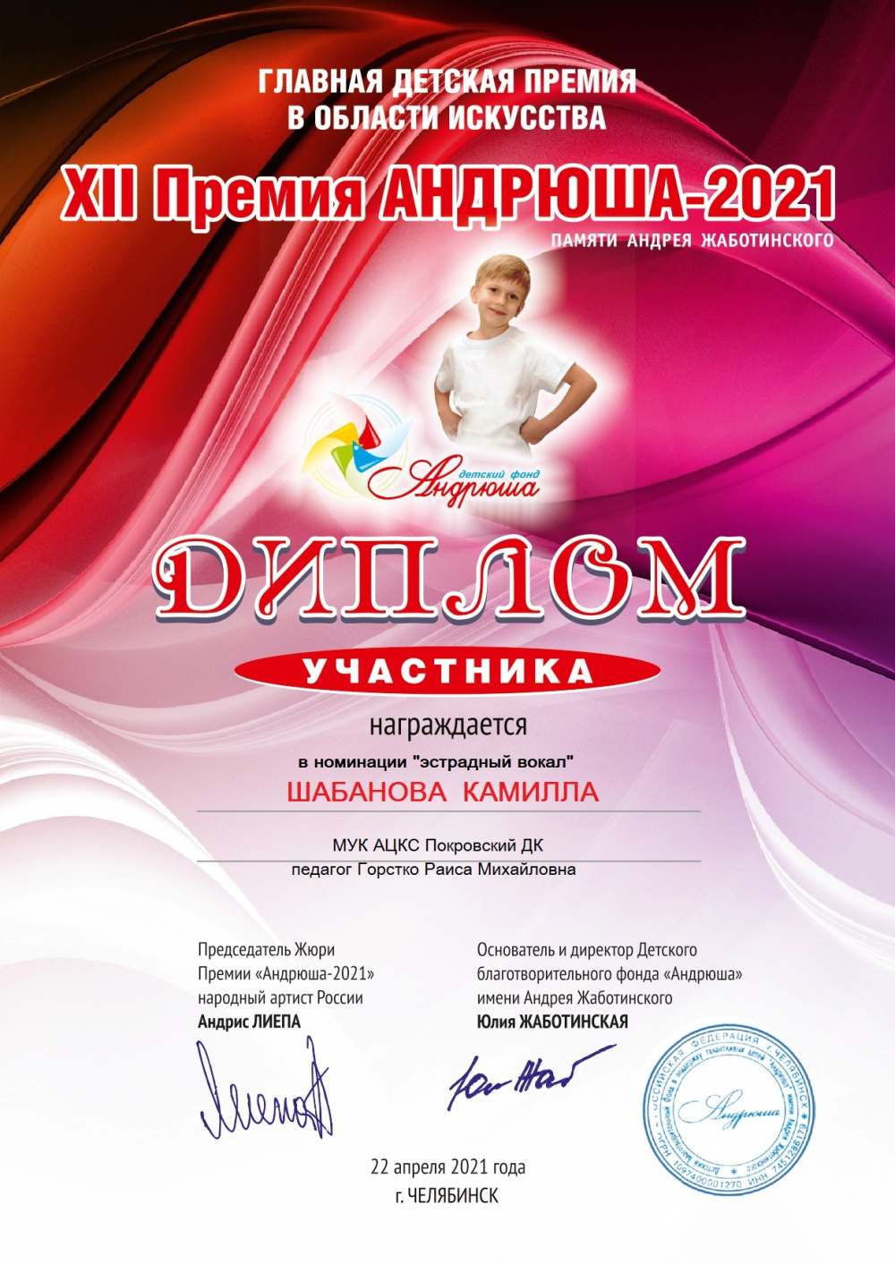 На прошедшей неделе состоялось торжественное вручение Дипломов, участникам Международных фестивалей творчества «ВМЕСТЕ» и главной детской премии в области искусства «Андрюша».