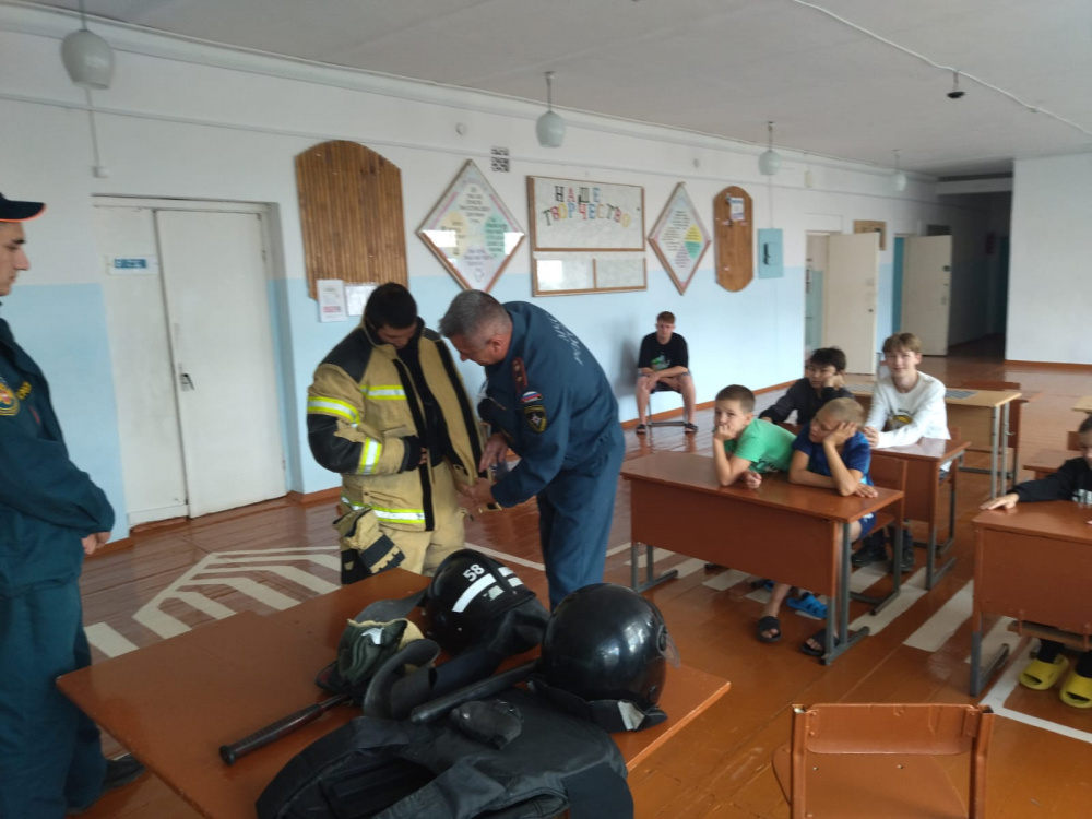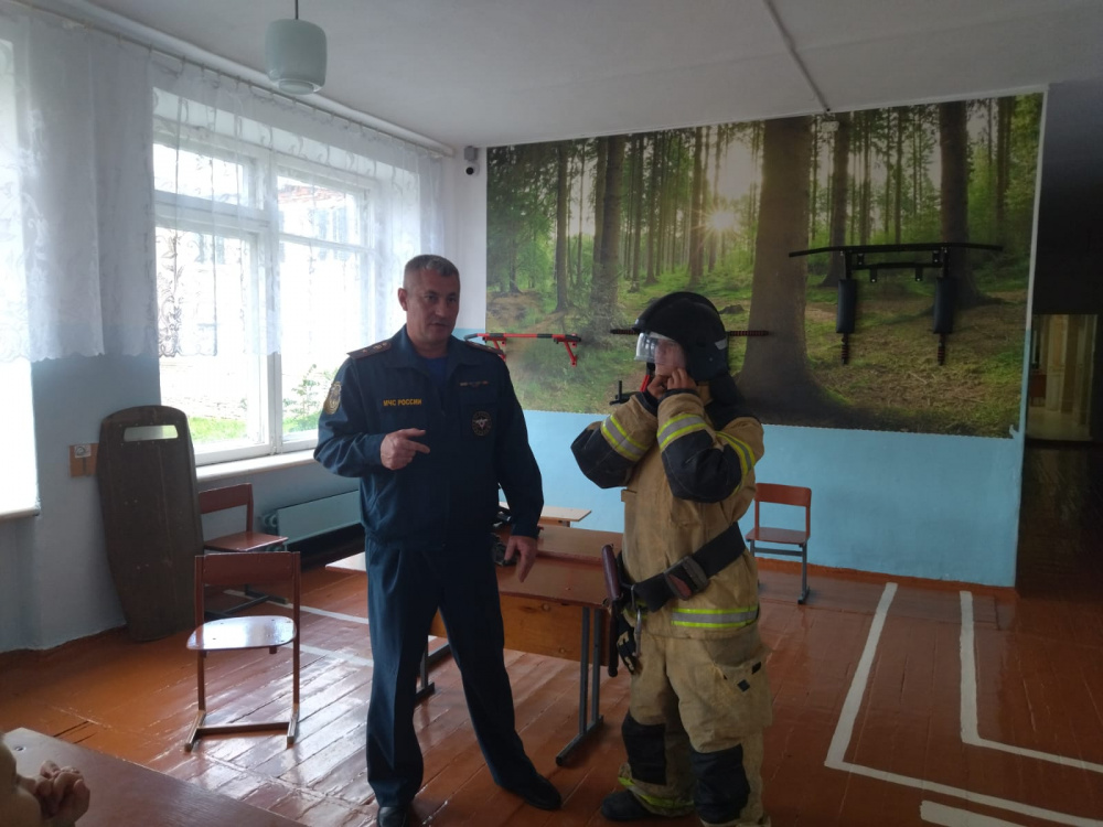 Ветеран государственной противопожарной службы майор внутренней службы Сергей Абдулин рассказал о своей службе, показал экипировку пожарных.