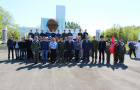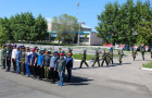 Учащиеся 10 классов приветствовали Начальника учебного сбора Акиньшина В.В. По звуки военного марша ребята военно-патриотического клуба «Варна» внесли знамя «Юнармии». Со встречным маршем прозвучал рапорт начальника учебного сбора главе ВМР, - мероприятие считать открытым!