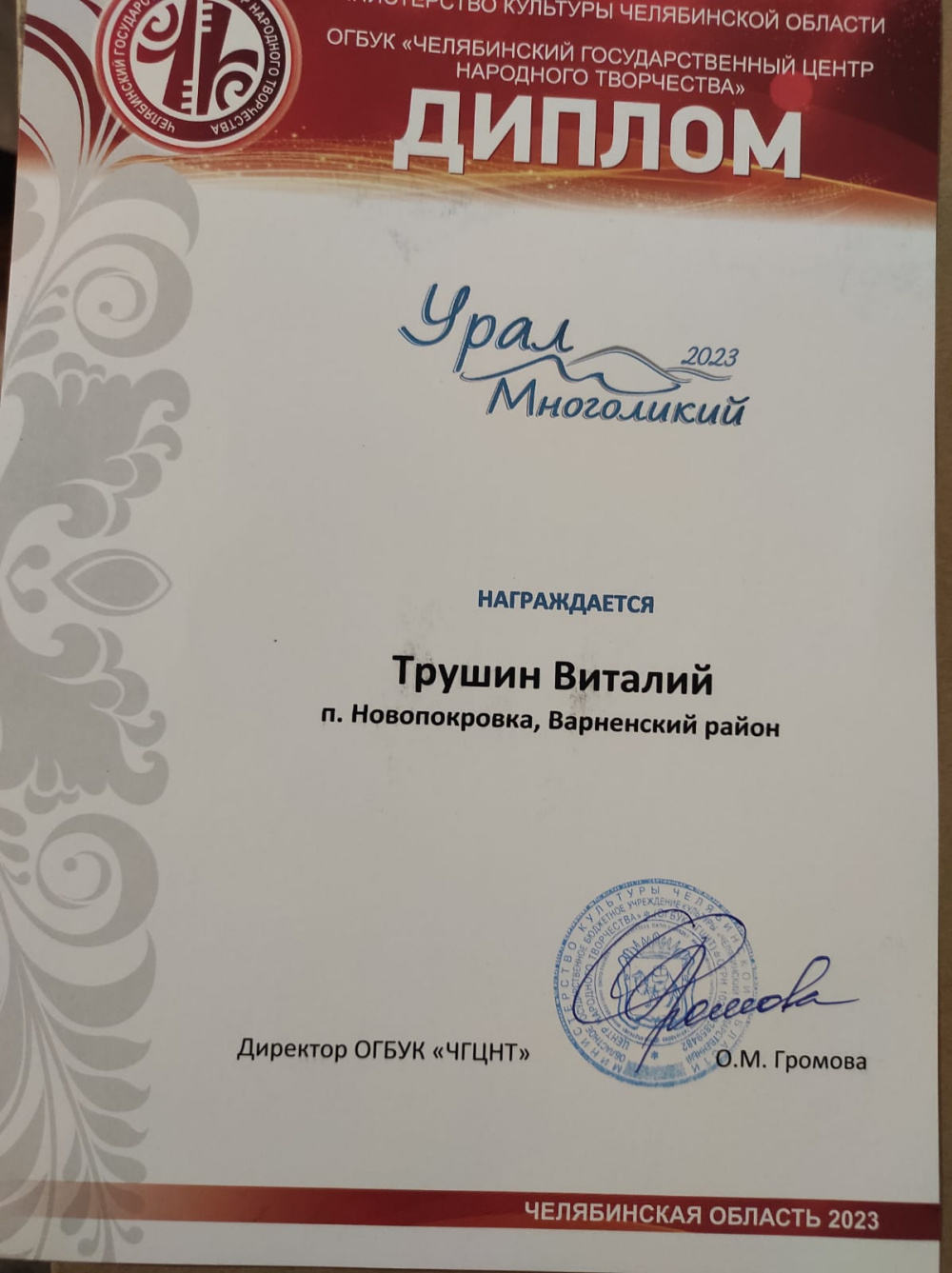 От Варненского района принимал участие сотрудник "Покровского Дома культуры" свои работы из дерева предоставил Трушин В.Ю., который прошёл отборочный тур и получил грамоту "За участие"