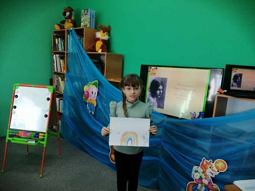 9 апреля в рамках клуба «Мультимания» был проведен урок литературного чтения «Разноцветные сказки» посвященный 120-ленему юбилею Софьи Абрамовны Могилевской – русской советской писательницы, автора познавательных книг, рассказов, сказок, повестей для детей и юношества.