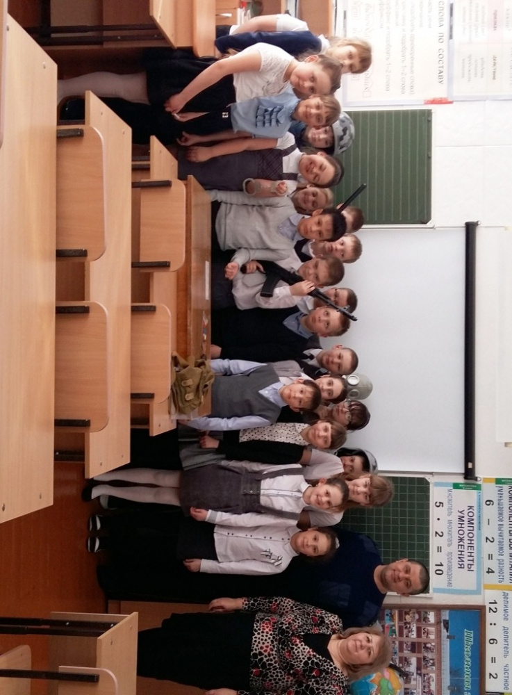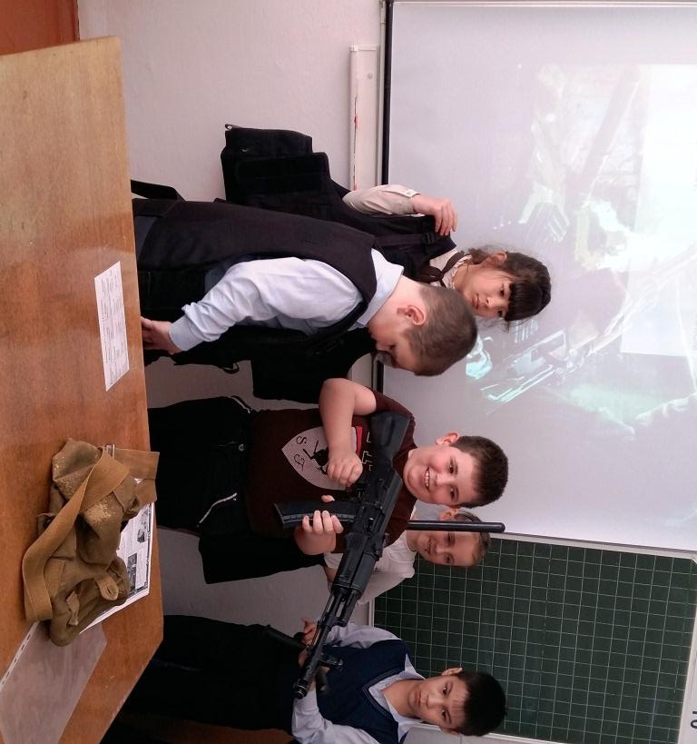Во время проведения патриотической акции «Неделя мужества» сотрудники вневедомственной охраны приняли участие в проведении уроков мужества для учащихся школ. Уроки прошли в 2 и 4 классах МОУ СОШ № 1 им. Героя Советского Союза М.Г. Русанова. Классные руководители Прудникова Н.В. и Прудникова И.А. вместе с ребятами подготовили выставку книг и рисунков ко Дню защитника Отечества. Аналитик ОВО Шихеева Л.А. рассказала ребятам об истории праздника, провела с ними несколько конкурсов и викторин. А командир отделения прапорщик полиции Романенков Е.И. рассказал ребятам о работе сотрудников войск национальной гвардии и продемонстрировал специальные средства, применяемые в работе полицейских. Ребята с огромным удовольствием примеряли на себя бронежилеты, защитные шлемы и противогазы. Задавали вопросы о службе в армии. В ходе беседы Евгений Иванович рассказал ребятам и том, как надо вести себя, чтобы не попасть в сложную ситуацию, и какие меры личной безопасности выполнять в обязательном порядке. На память ребятам были розданы памятки о соблюдении мер личной безопасности. В конце встречи все поздравили мальчиков с наступающим праздником и пожелали им быть сильными, здоровыми, крепкими, хорошо учиться. Но, пожалуй, главное пожелание, которое прозвучало в этот день было такое: пусть небо над головой наших детей будет мирным.