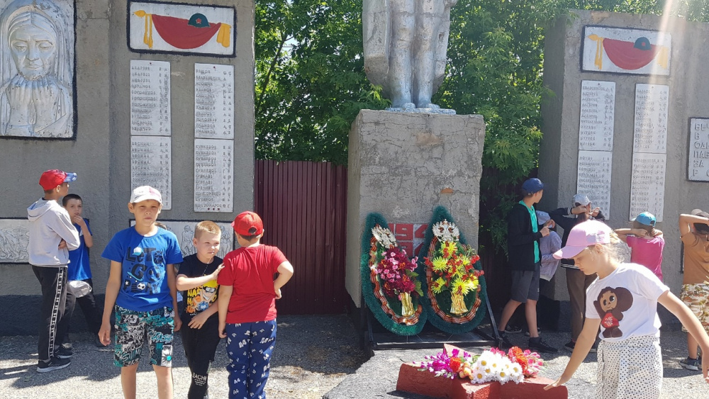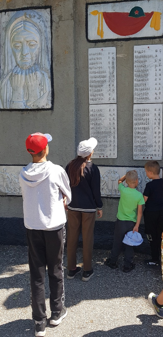 Затем дети возложили цветы к Памятнику солдату. На мемориальных досках каждый мог прочесть фамилии тех односельчан, кто отдал жизнь в борьбе с фашистским захватчиком. Некоторые нашли фамилии своих родственников и были очень горды. День памяти и скорби был отмечен минутой молчания.