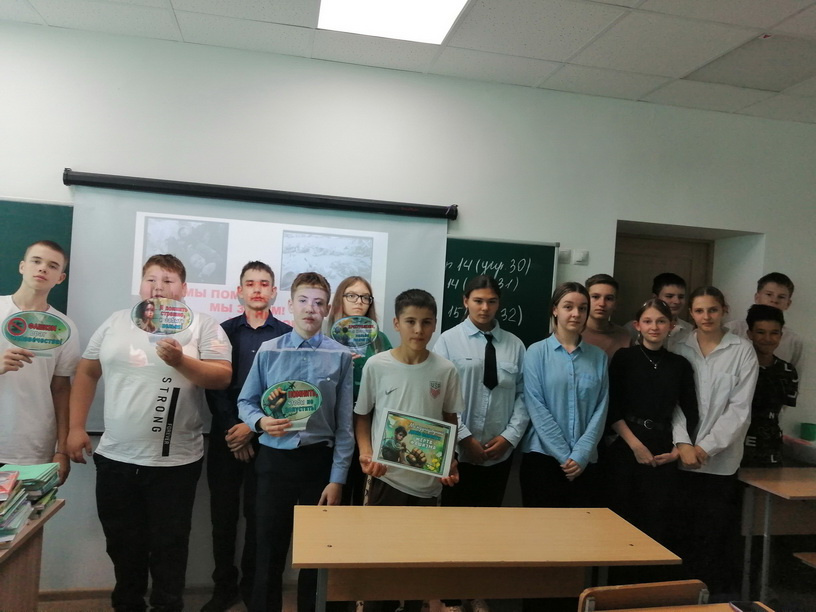 Также в ходе урока были зачитаны отрывки из таких произведений, как В. Быков «В списках не значился», «Война глазами детей»Свидетельства очевидцев, отрывок из повести М. Рольникайте «Долгое молчание».