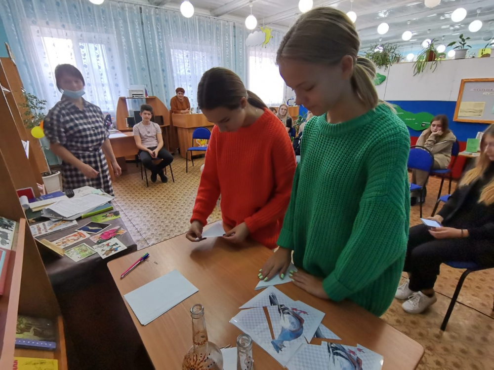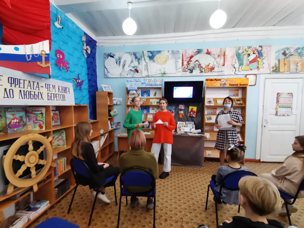 Библиотекарь предложила совершить путешествие по почтовым станциям, на которых ребята узнали, что самое древнее письмо называлось «Петроглифы, что в Перу существовало узелковое письмо – кипу. На станции «Бутылочная» к библиотечному берегу принесло бутылку с заданием, в котором нужно было вставить пропущенные слова из стихотворения С. Я. Маршака «Почта военная».