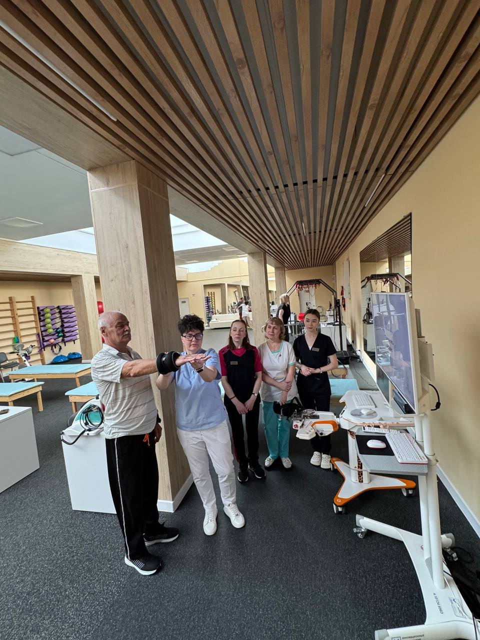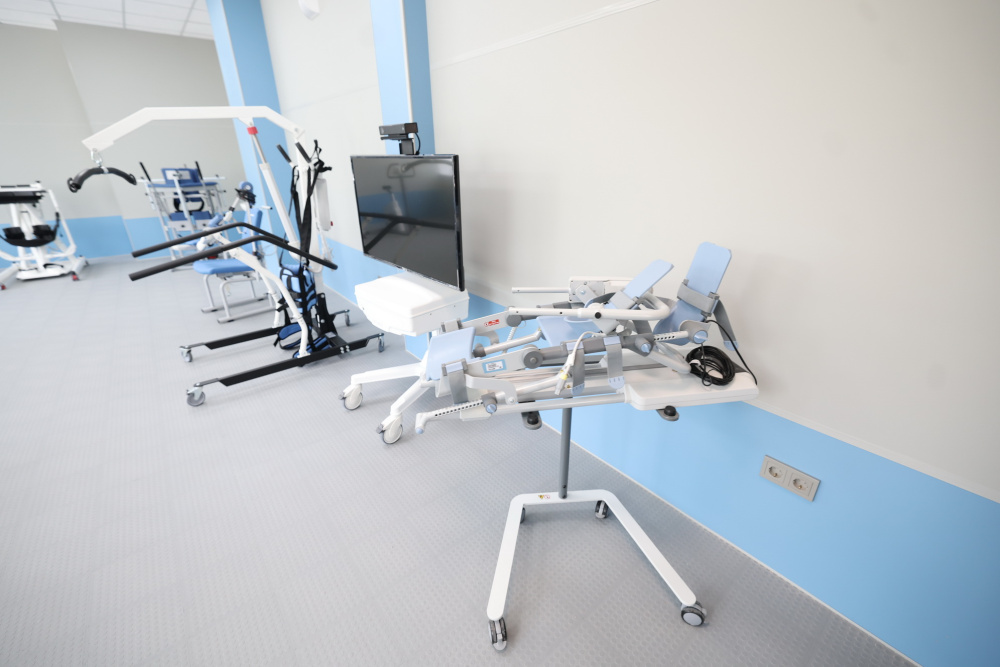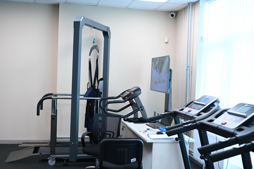 – зал лечебной и адаптивной физической культуры, оснащенный современными силовыми, кардио- и адаптивными тренажерами, тренажером ходьбы «Биокинект» с адаптивной электрической стимуляцией и биологической обратной связью, что позволяет проводить диагностику и восстановление функции ходьбы. Адаптивная и лечебная физкультура проводится с комплексом роботизированной аппаратной механотерапии на все виды суставов верхних и нижних конечностей для разработки контрактур (тугоподвижности) суставов;